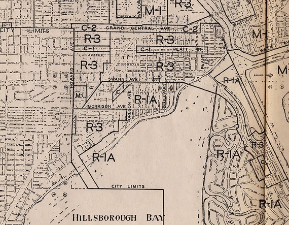 Tampa Florida Vintage Map Etsy