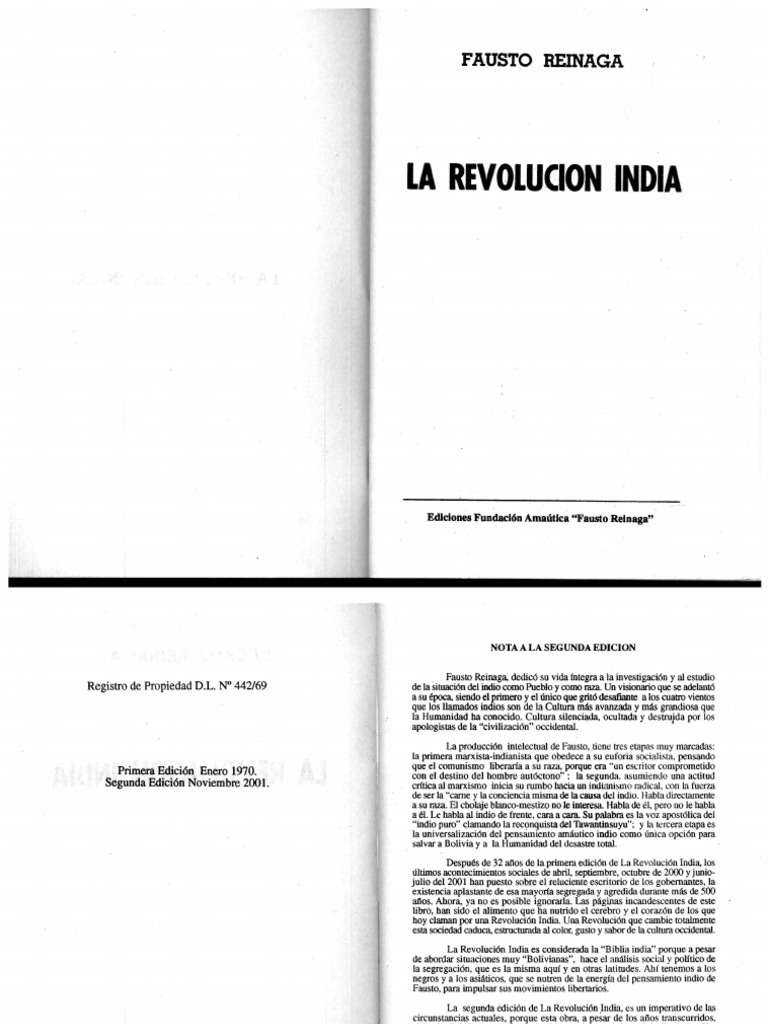 Fausto Reinaga La Revolucion India Bolivia Mundo Occidental