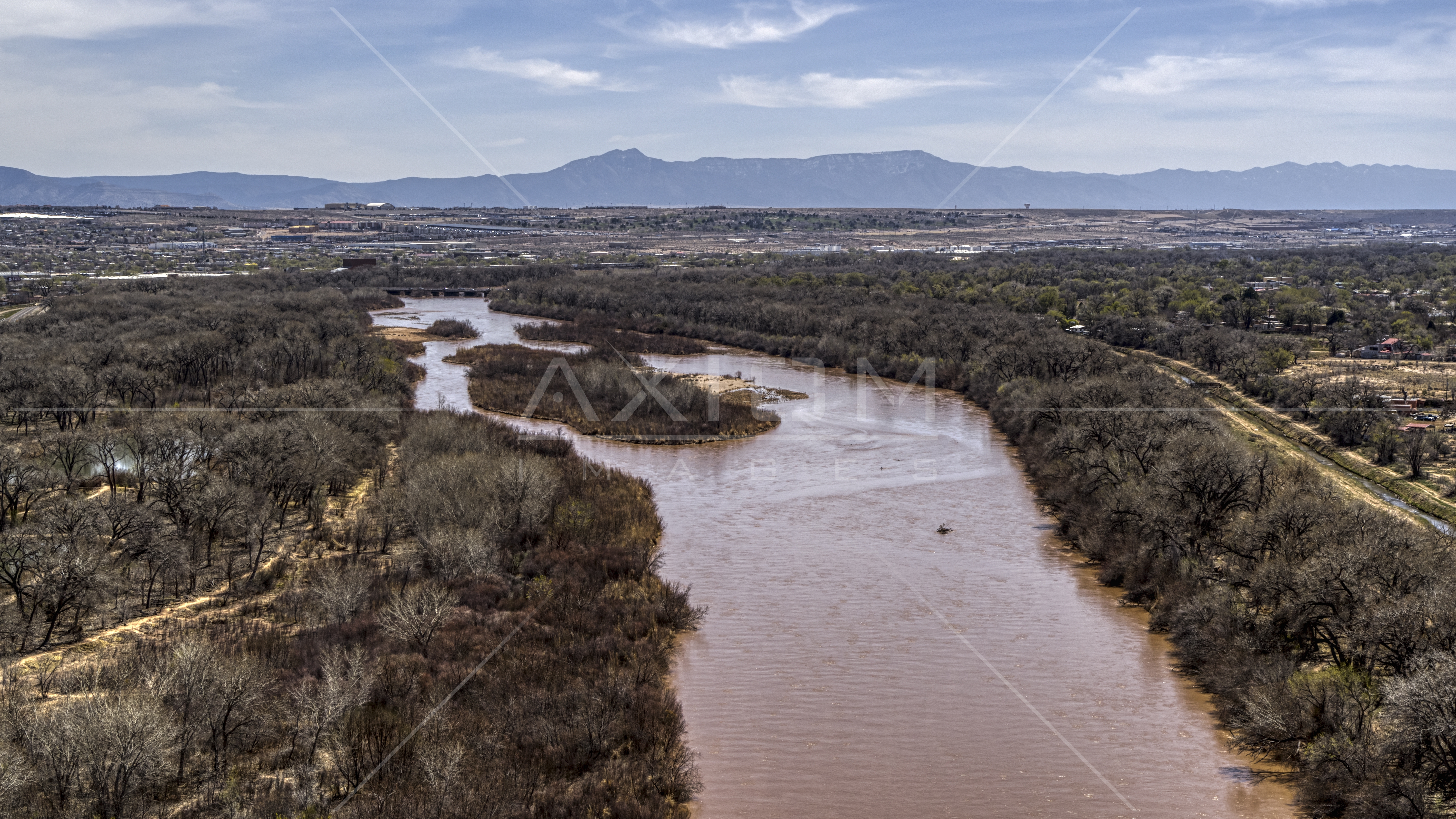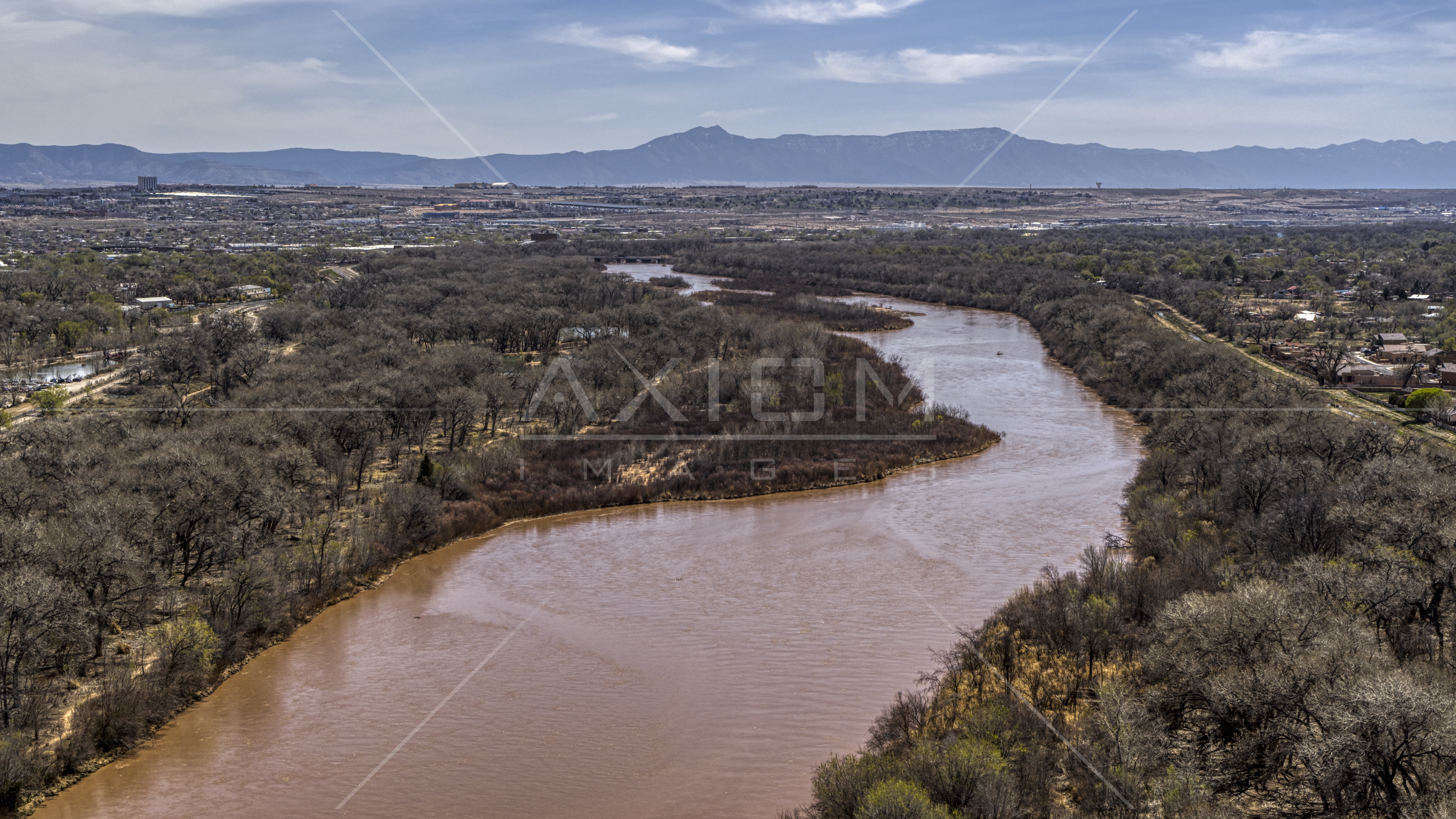 The Rio Grande River In Albuquerque New Mexico Aerial Stock
