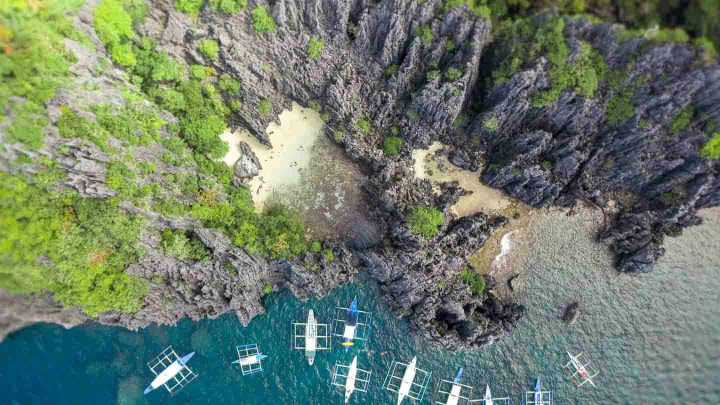 Aerial View Of Boats At Hidden Beach El Nido Palawan Philippines