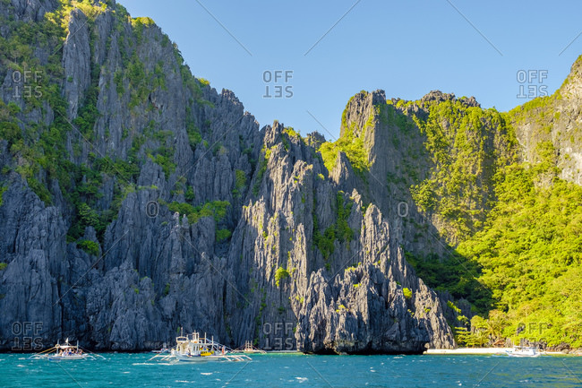 Dramatic Karst Limestone Cliffs At Secret Lagoon Beach On Miniloc