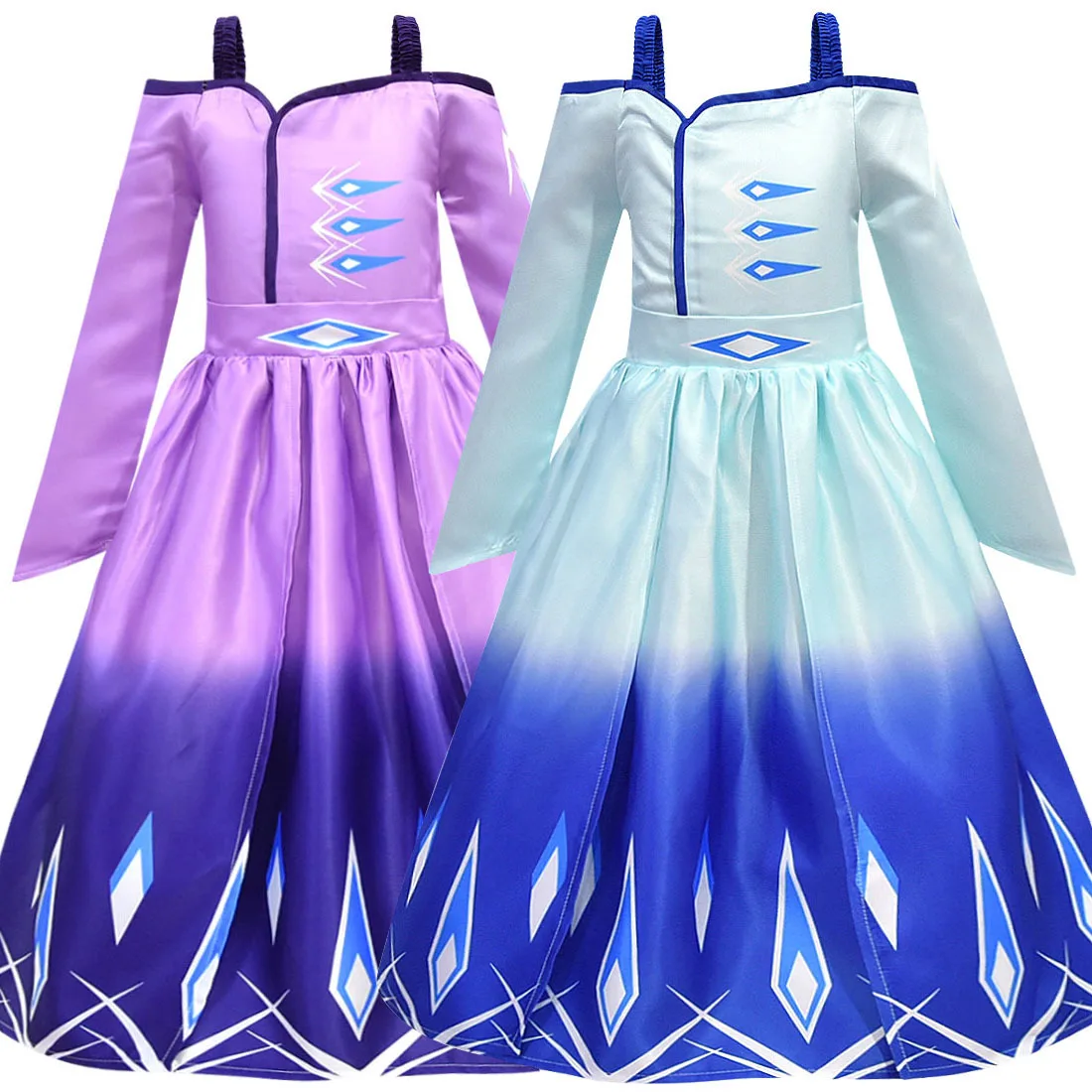 Snow Queen Elsa 2 Dress For Girls Halloween Carnival Cosplay