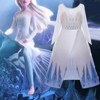Girls Frozen 2 Cosplay Snow Queen Elsa White Dress Costume Kids
