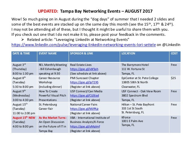 August Networking Events In Tampa Bay For Linkedin Article Https