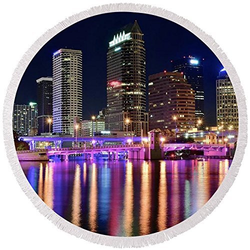 Pixels Round Beach Towel With Tassels Featuring A Tampa Bay Night
