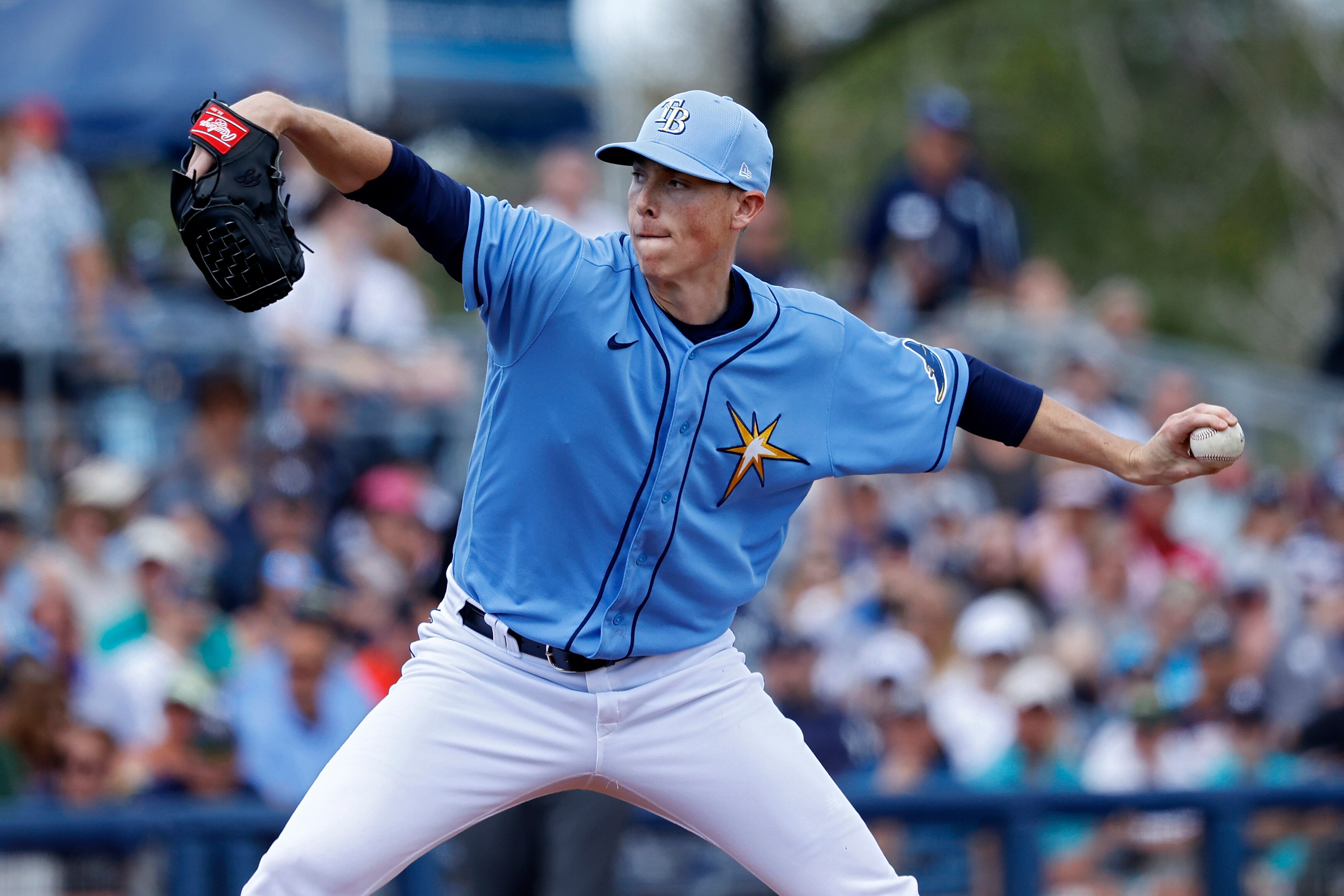 Tampa Bay Rays Relief Pitcher Brooks Pounders 86 Delivers A