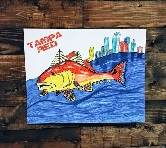 Tampa Red Redfish Fish Art Etsy