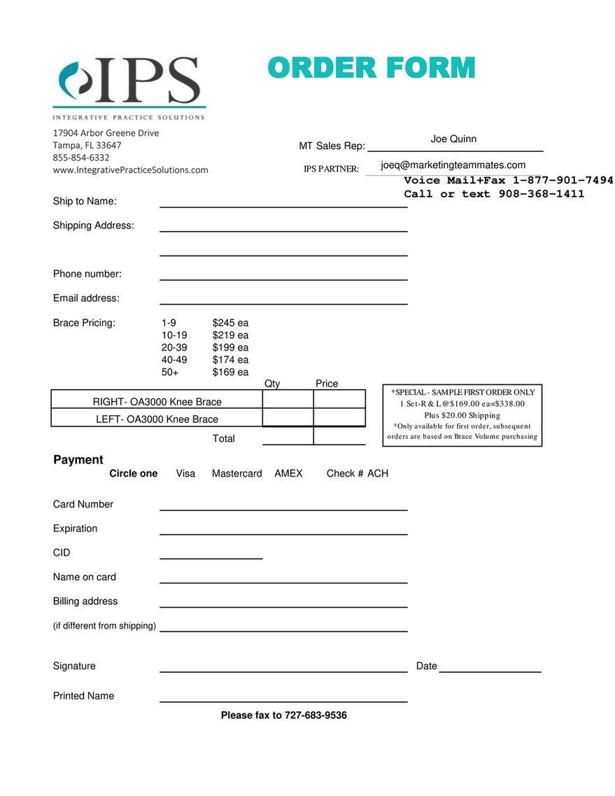Joseph Quinn Use Brace Order Form Ips Jq Page 1 Created With