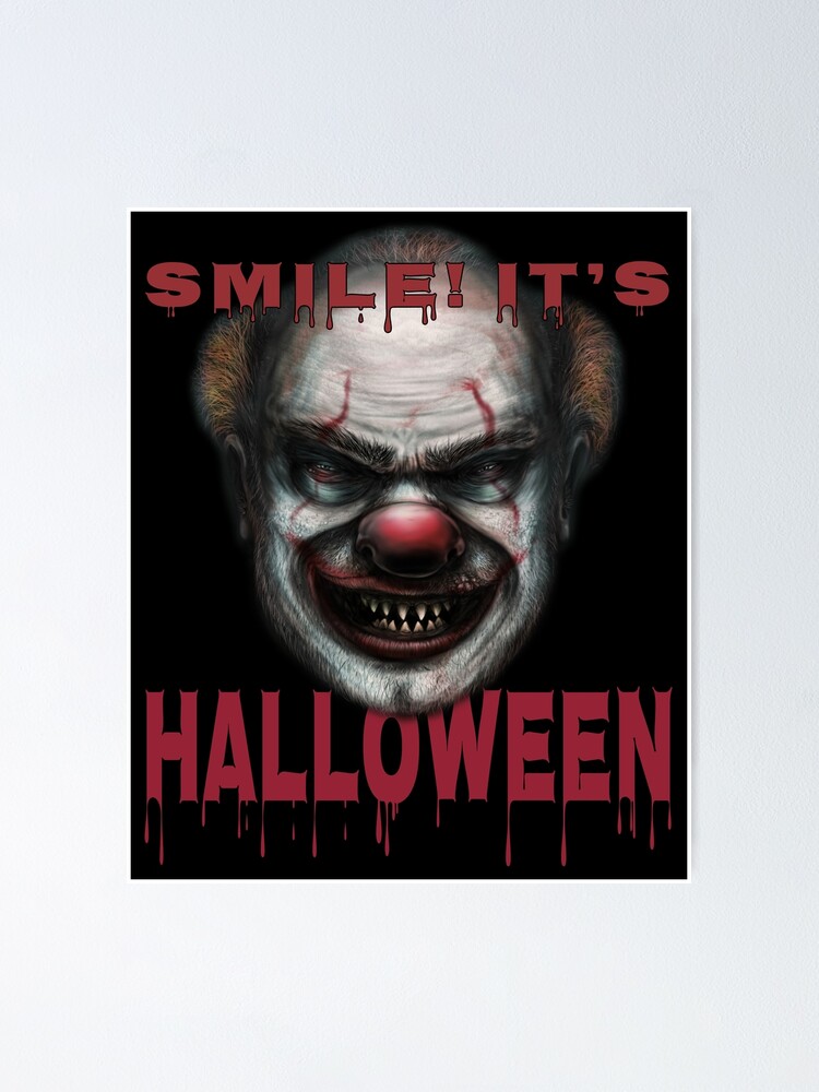 Smile It S Halloween Scary Clown Red Text Design Poster By Highbrowdesigns Redbubble