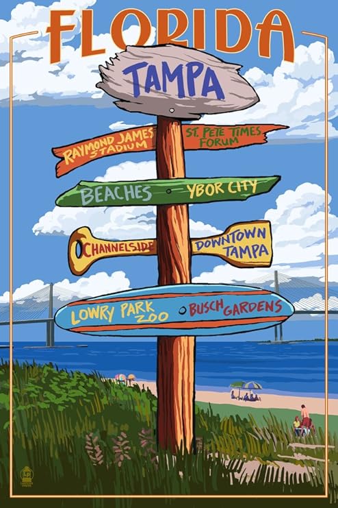 Amazon Com Tampa Florida Destinations Sign 36891 12x18 Signed