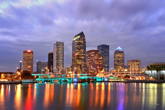 Amazon Com Photosbyjon Tampa Skyline Night Color Downtown City