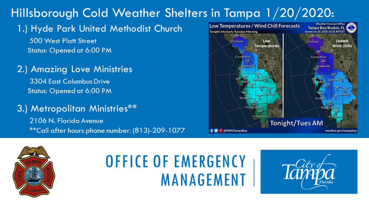 Alert Tampa On Twitter Due To Cold Weather Conditions Tonight