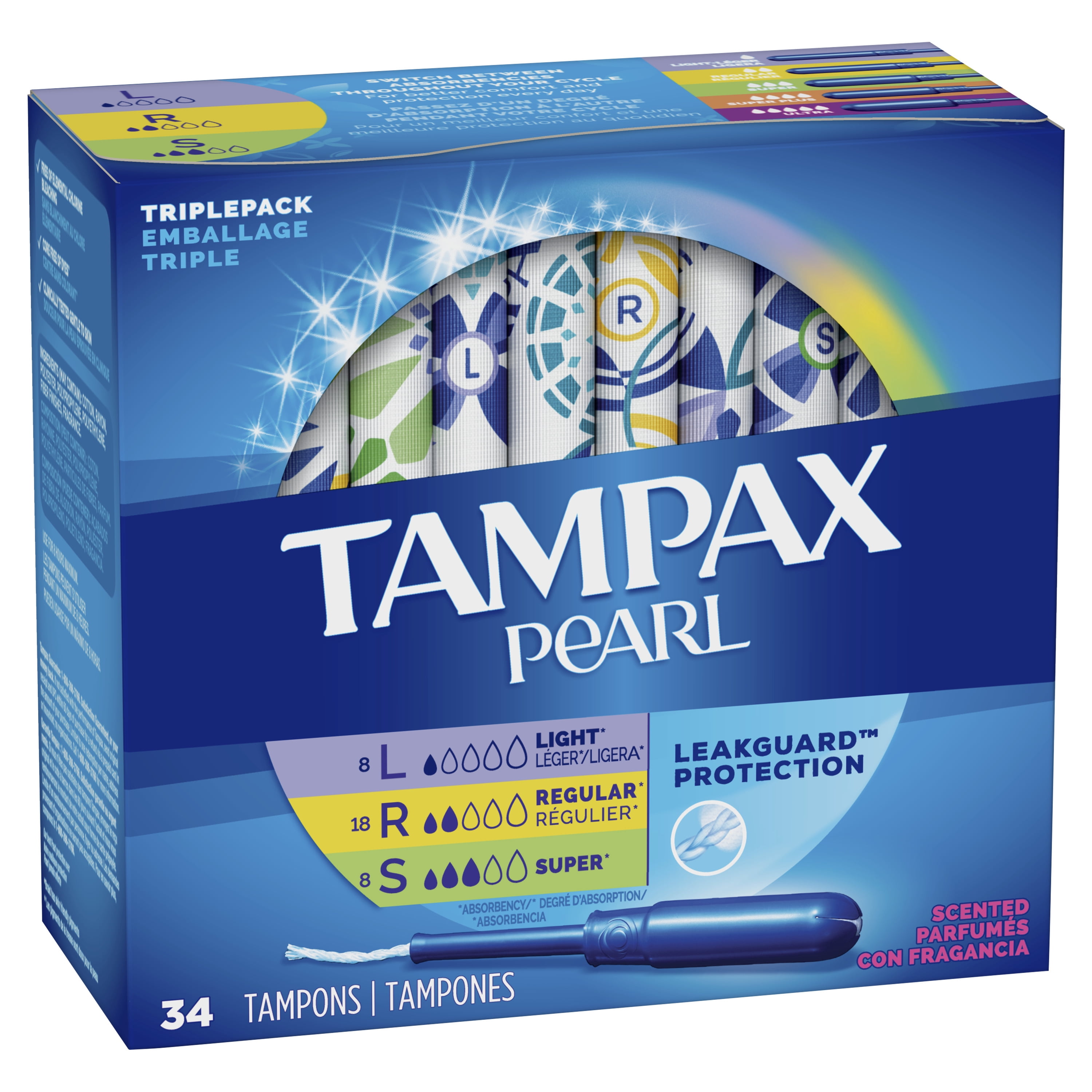 Tampax Pearl Tampons Triplepack Light Reg Sup Scented 34 Ct