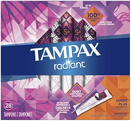 Tampax Radiant Plastic Tampons Super Plus Absorbency 28 Count
