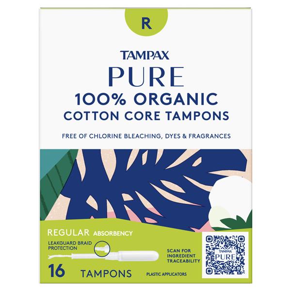 Tampax Pure 100 Organic Cotton Core Tampons Regular Absorbency