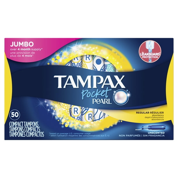 Tampax Pocket Pearl Tampons Unscented 50 Count Walmart Com
