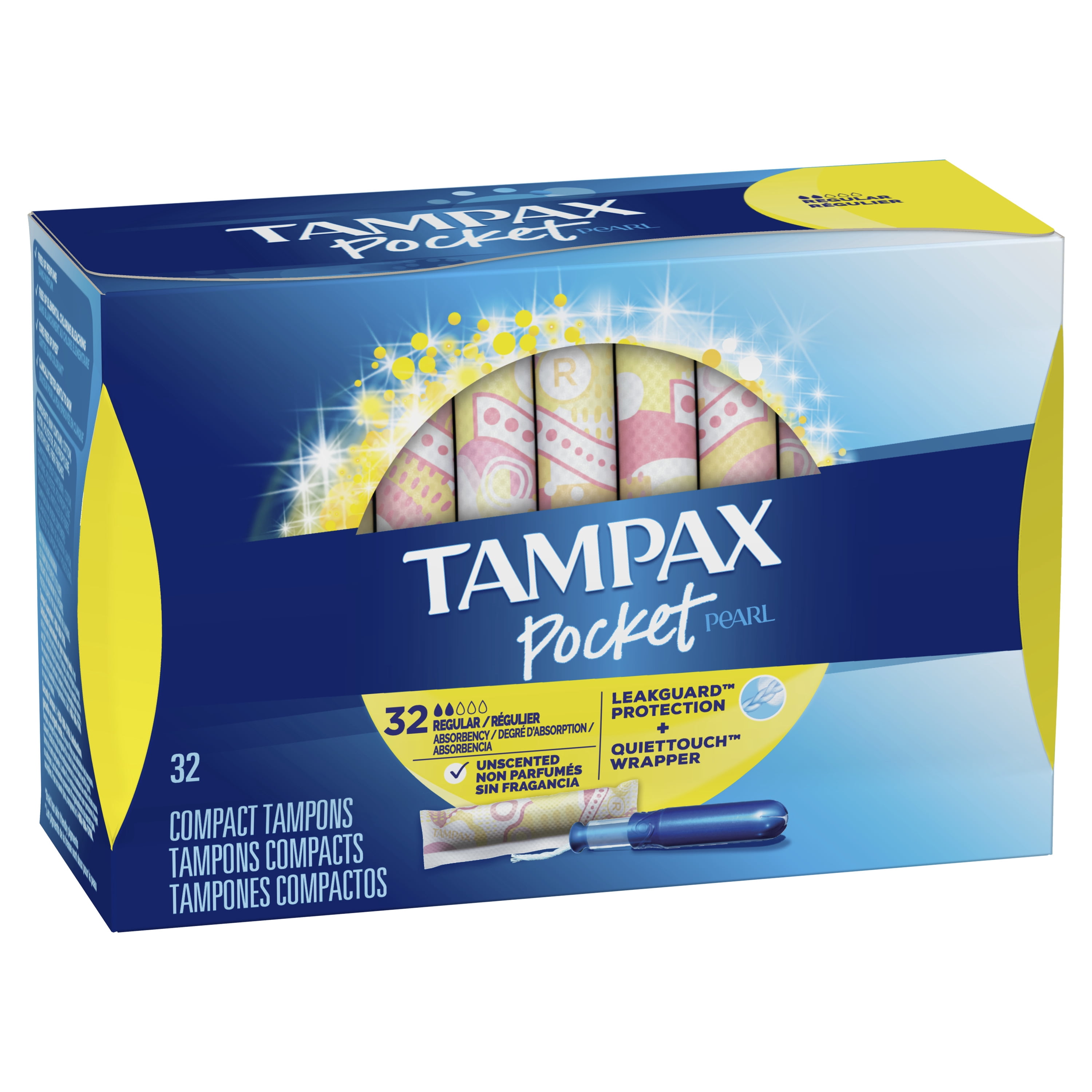 Tampax Pocket Pearl Tampons Unscented Regular Absorbency 32 Ct