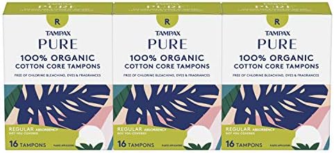 Tampax Pure 100 Organic Cotton Core Regular Absorbency Tampons