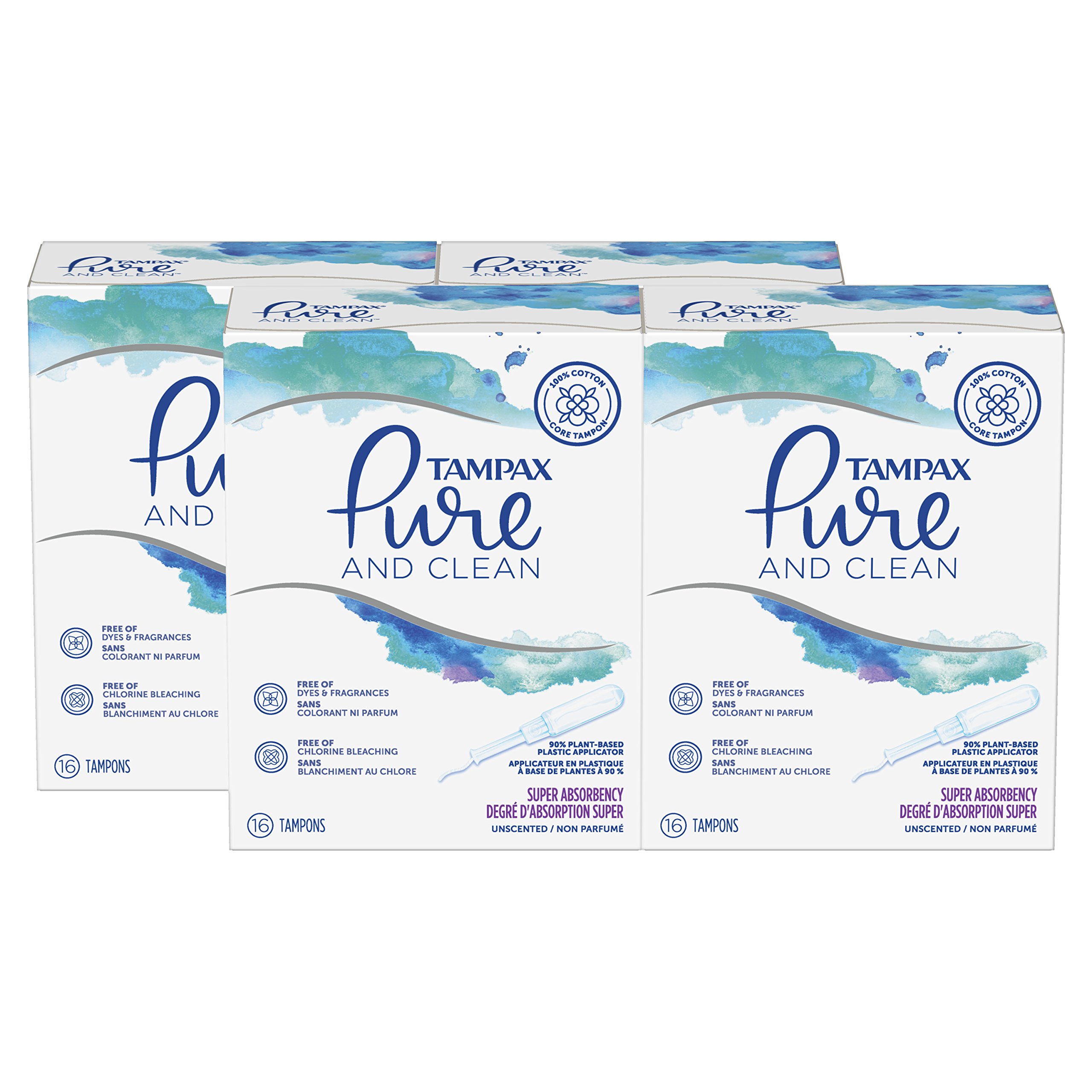 4 Tampax Pure Clean 16 Ct Regular Absorb Plastic Applic