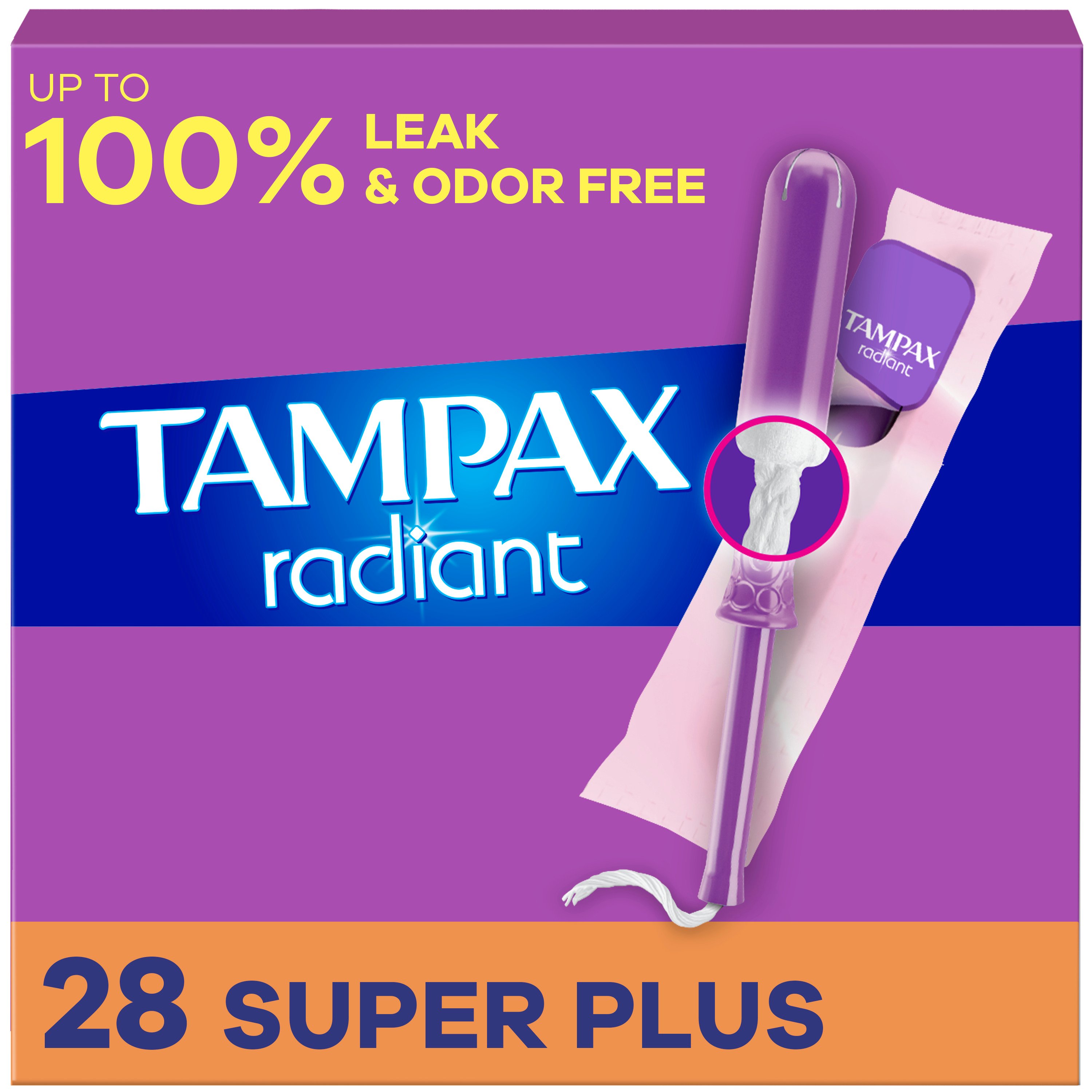 Tampax Radiant Plastic Unscented Tampons Super Plus Absorbency