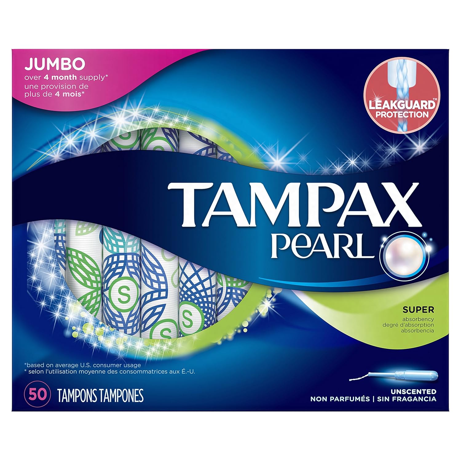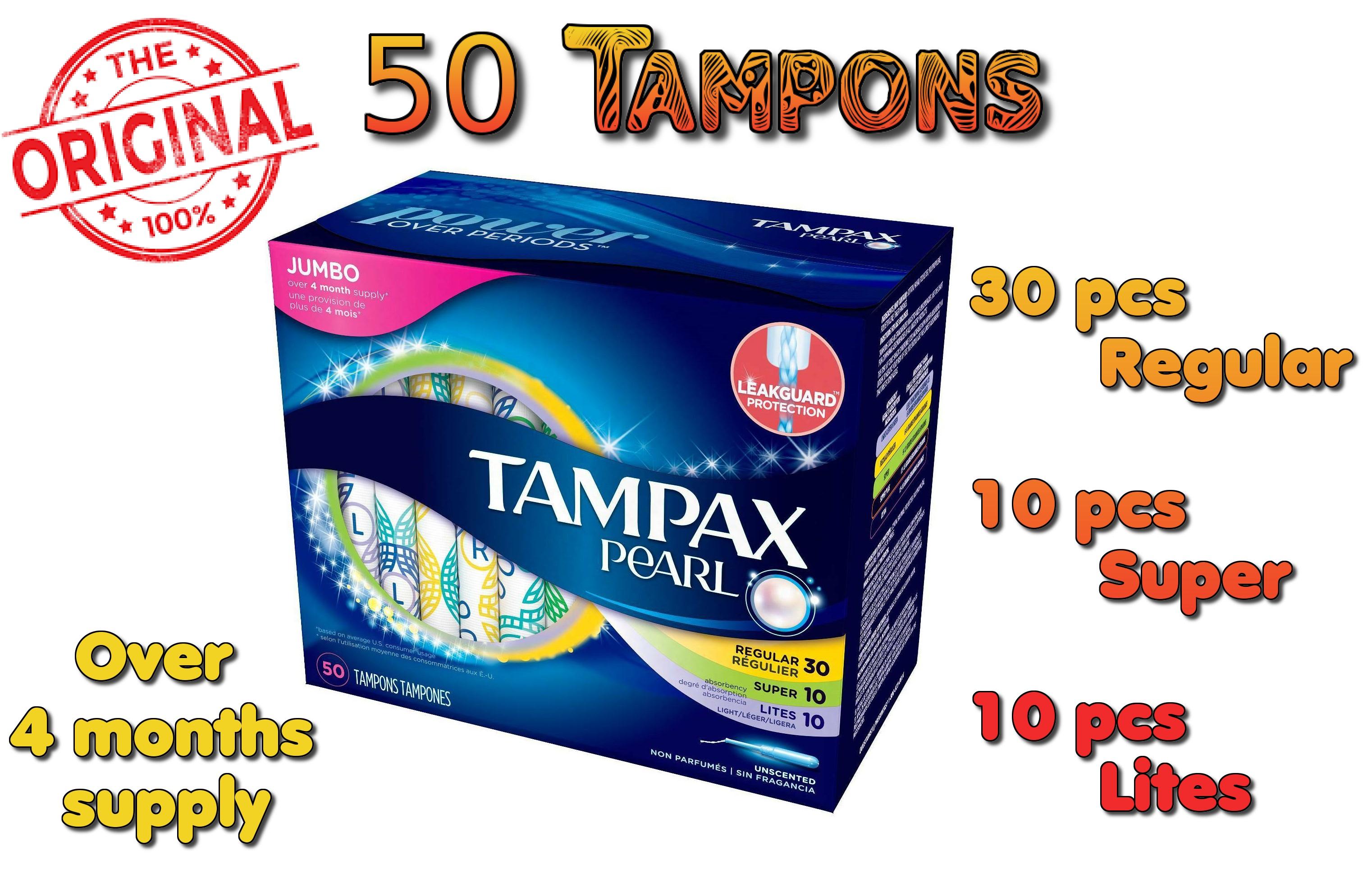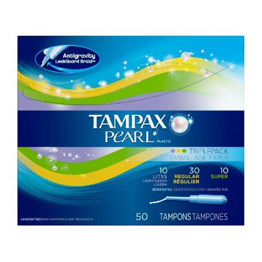 Tampax Pearl Tampons Plastic Unscented Jumbo Pack 50 Tampons