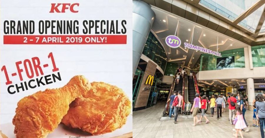 Kfc S Pore Opens New Outlet At Tampines Mall Offers 1 For 1