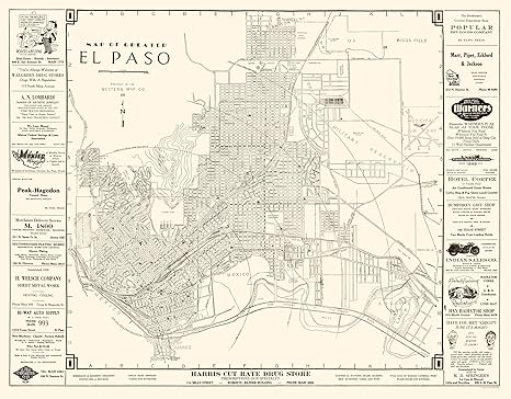 Amazon Com El Paso Texas Tx Por Western Mapa Co 1938
