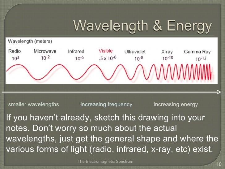 The electromagnetic spectrum frequency wavelength and speed. Here is the full electromagnetic spectrum. The spectrum is continuous with no sudden changes or boundaries. This is the relationship between wavelength and frequency. The electromagnetic spectrum can be expressed in terms of energy wavelength or frequency.