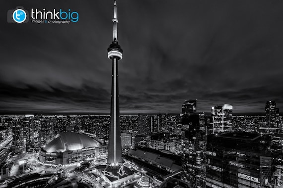 Toronto Skyline Print Black And White Photography Cn Tower Etsy