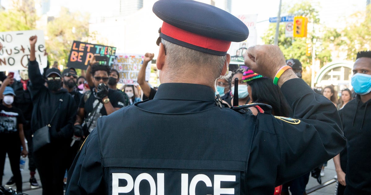 Toronto Police Officers Take A Knee As Thousands Protest Anti