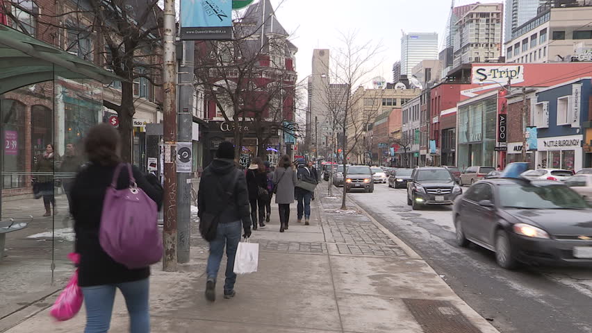 Toronto Ontario Canada March 2105 Busy Streets People Traffic