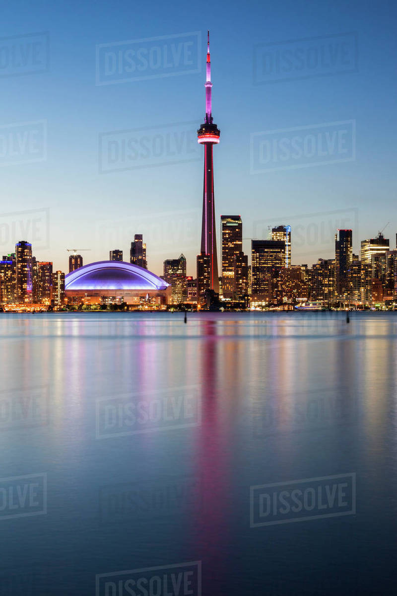Canada Ontario Toronto Skyline At Night Stock Photo Dissolve