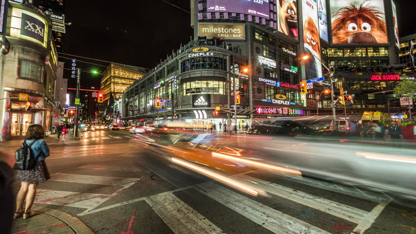 Downtown Toronto Traffic On Queen Street At Night By Intuilapse