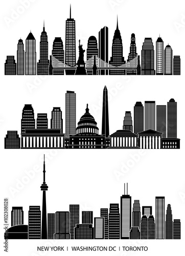 City Skyline Detailed Silhouette Set New York Washington Dc