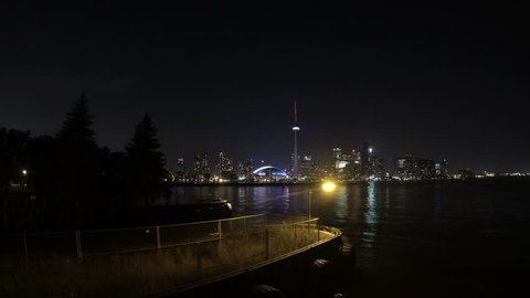 Toronto City Skyline Seen At Night From Hanlan S Point Ferry