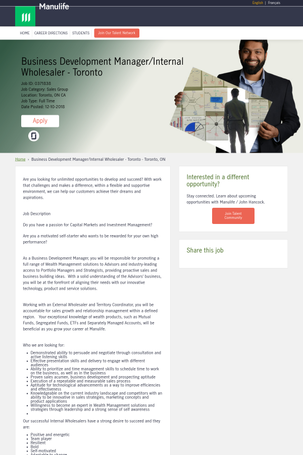 Business Development Manager Internal Wholesaler Toronto Job