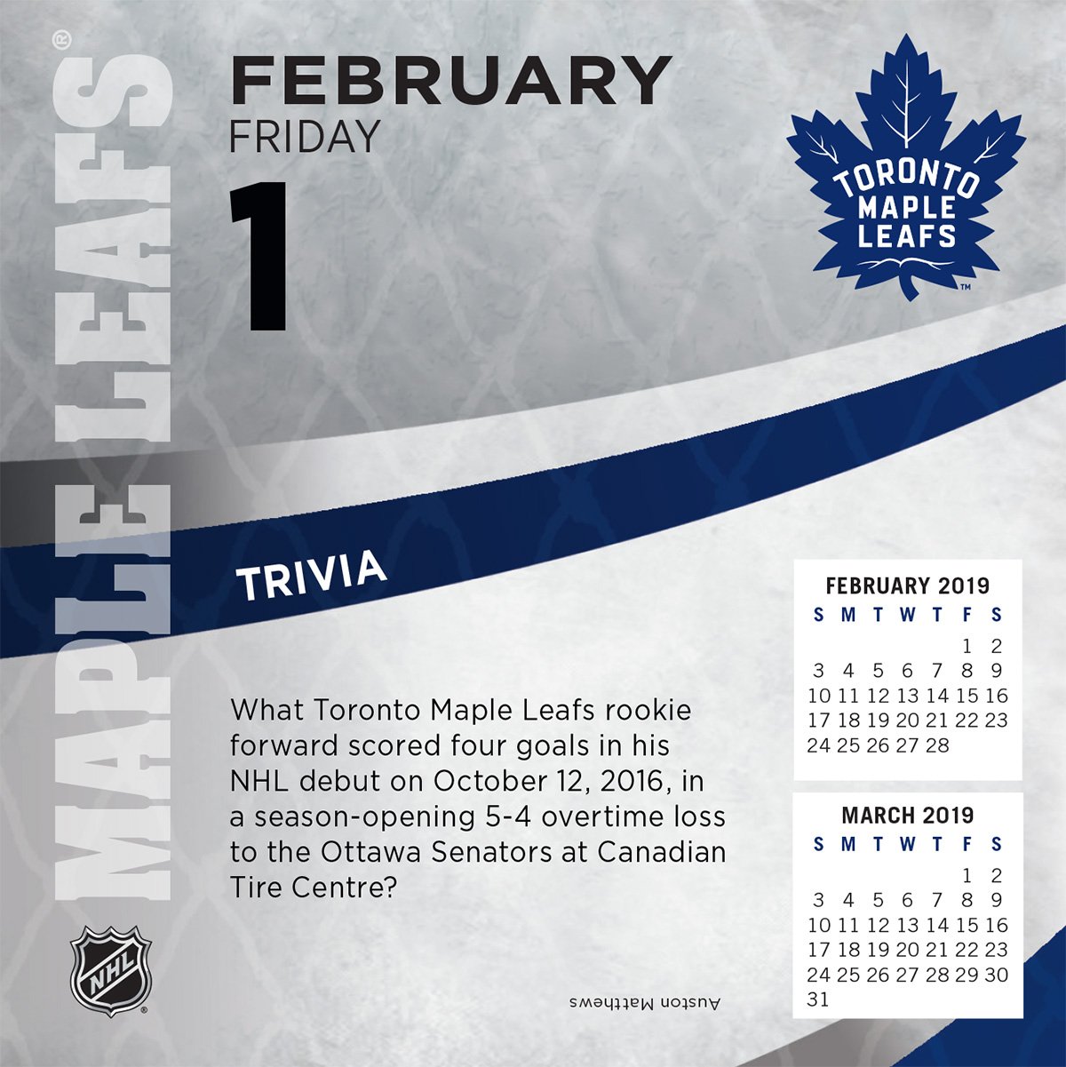 Turner 1 Sport Toronto Maple Leafs 2019 Box Calendar Desk Calendar