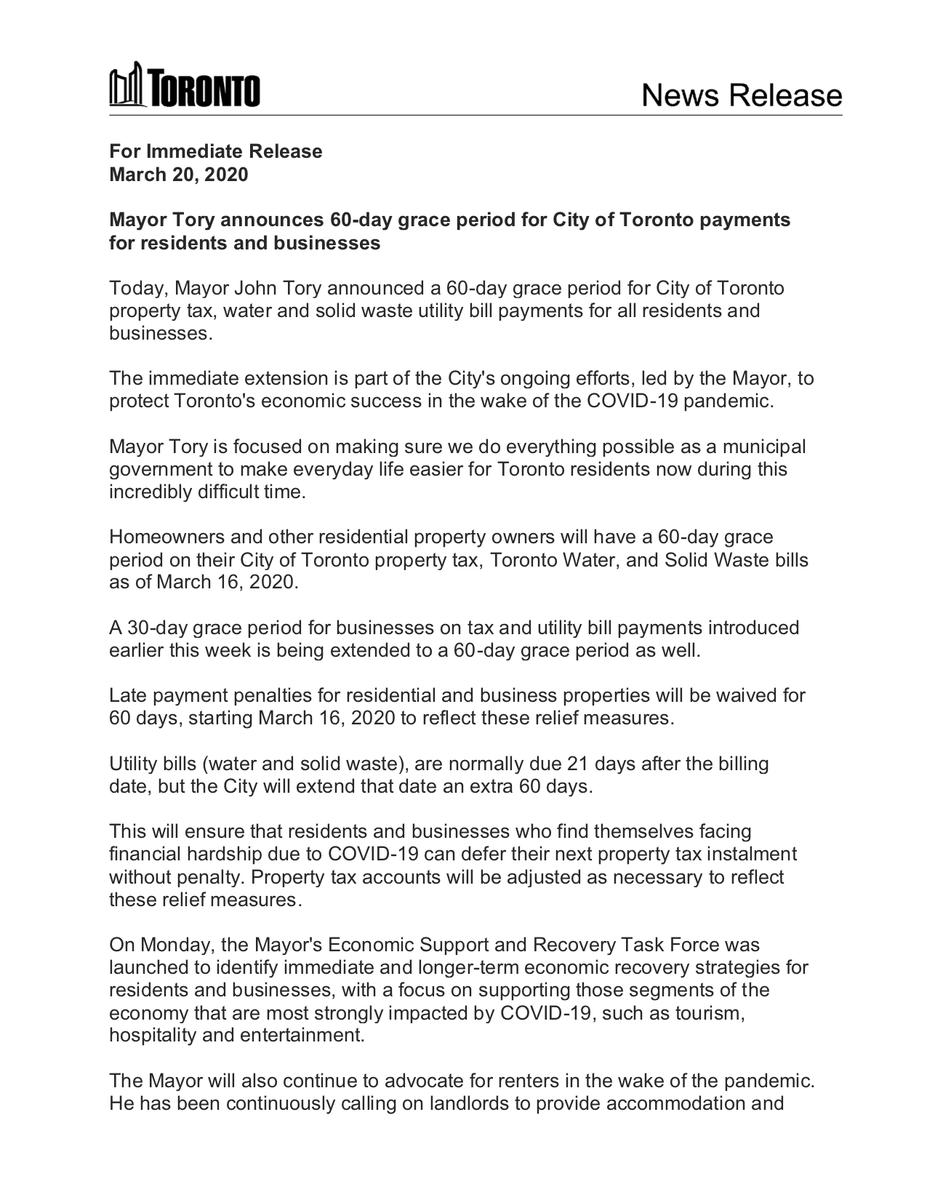 John Tory On Twitter Today We Are Announcing A 60 Day Grace