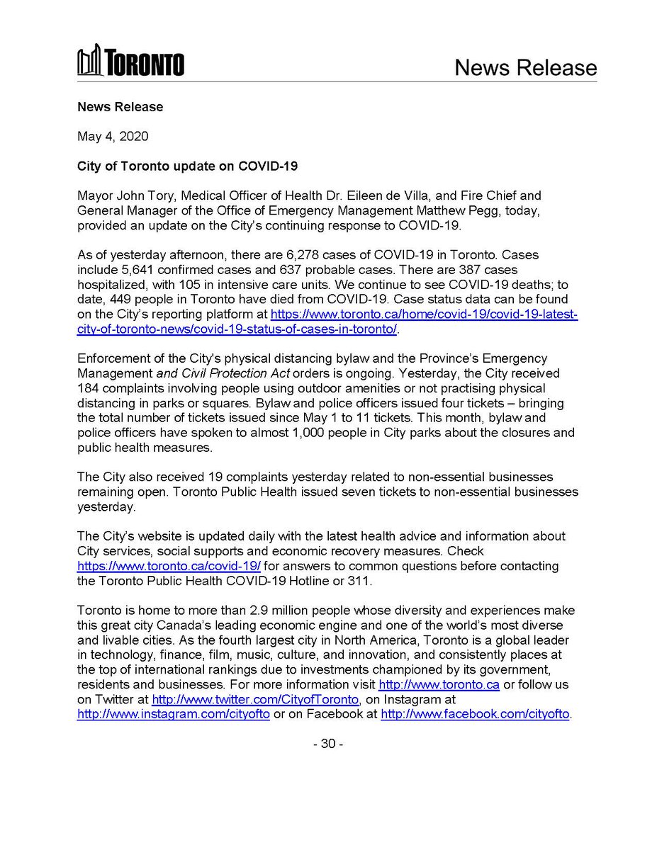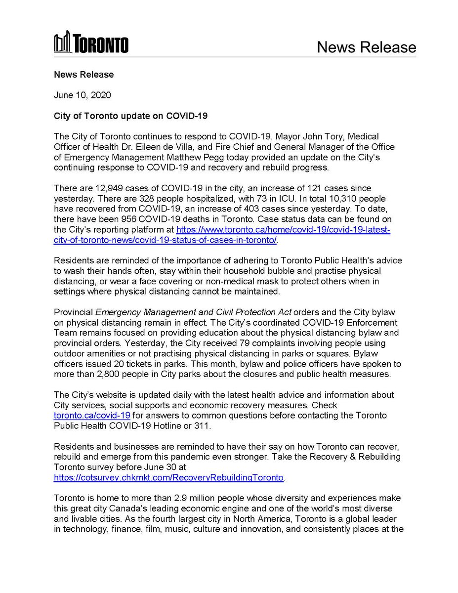 City Of Toronto On Twitter Cityofto Update On Covid19 News