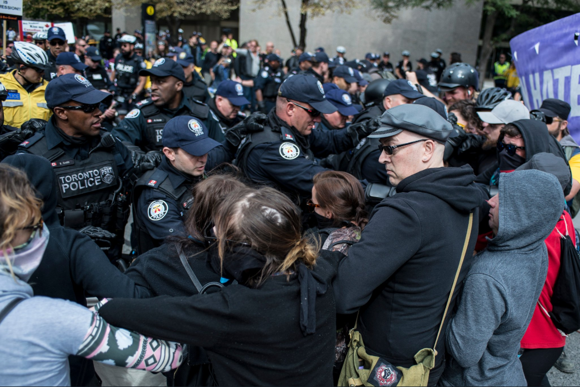 Toronto Police Use Force To Clear Path For Hate Groups To March