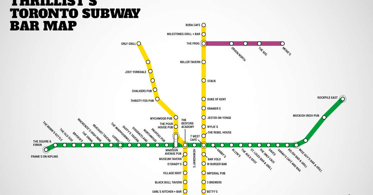 Toronto Subway Map With Bars For Every Stop Thrillist