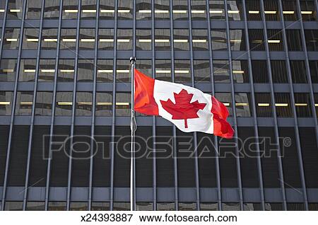 Canada Ontario Toronto Canadian Flag In Front Of Building Low