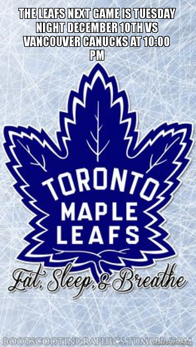 The Leafs Next Game Is Tuesday Night December 10th Vs Vancouver