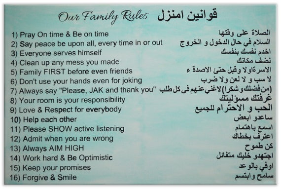 Family Rules In Arabic And English Rules For Kids Etsy