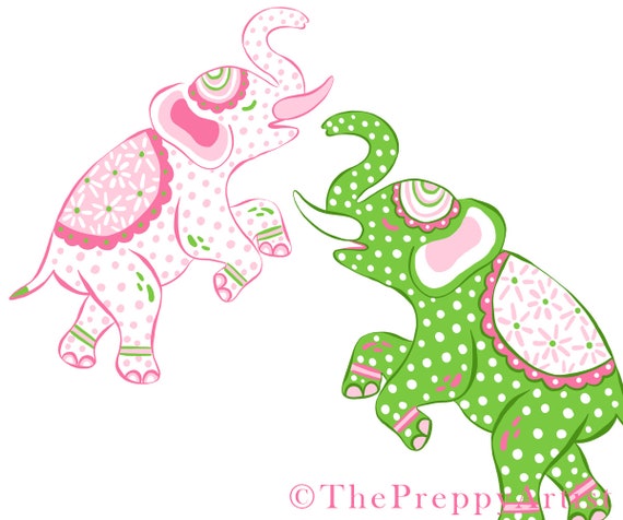 Instant Download 2 Preppy Colorful Elephant Png Files Etsy