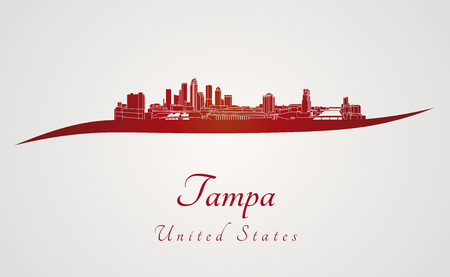 Clip Art Vector Tampa Florida City Silhouette Red Background