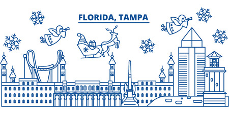 Usa Florida Tampa Winter City Skyline Merry Christmas And Happy