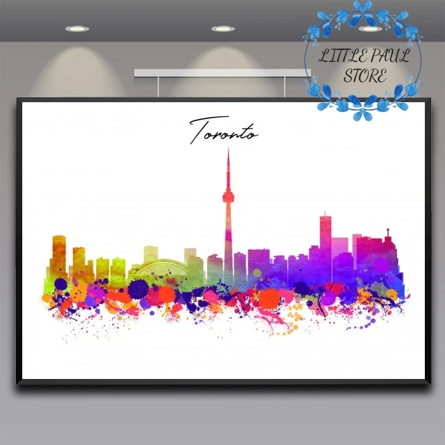 Print On Canvas Material Toronto Watercolor Rolled Skyline Etsy
