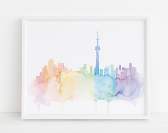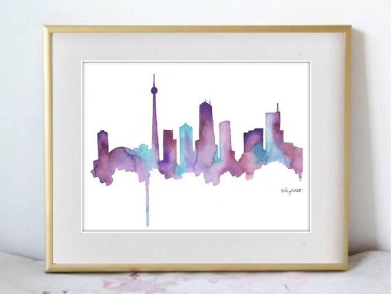 Watercolor Painting Toronto Skyline Print Watercolour Wall Art Etsy