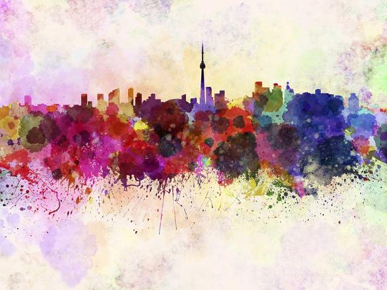 Toronto Skyline In Watercolor Background Poster Paulrommer
